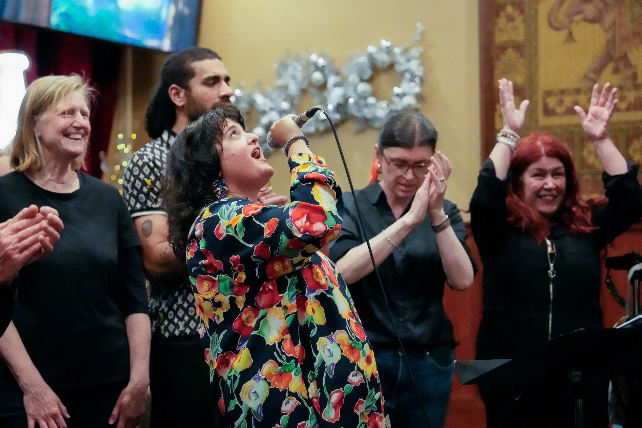 We’re a secular choir, singing Gospel, soul, protest, contemporary and popular songs that feel good to sing and express our progressive values as a choir. Check out the FAQ below for how to join, watch or book the choir.
